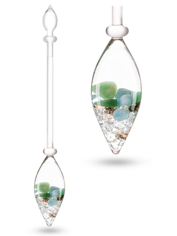 Die VitaJuwel Edelsteinstäbe werden aus hochwertigem, schadstofffreiem Glas von Meisterhand in einem patentierten Herstellungsverfahren handgefertigt. Gefüllt werden die Glasphiolen ausschließlich mit fair gehandelten, handverlesenen und sorgfältig gereinigten Edelsteinen.